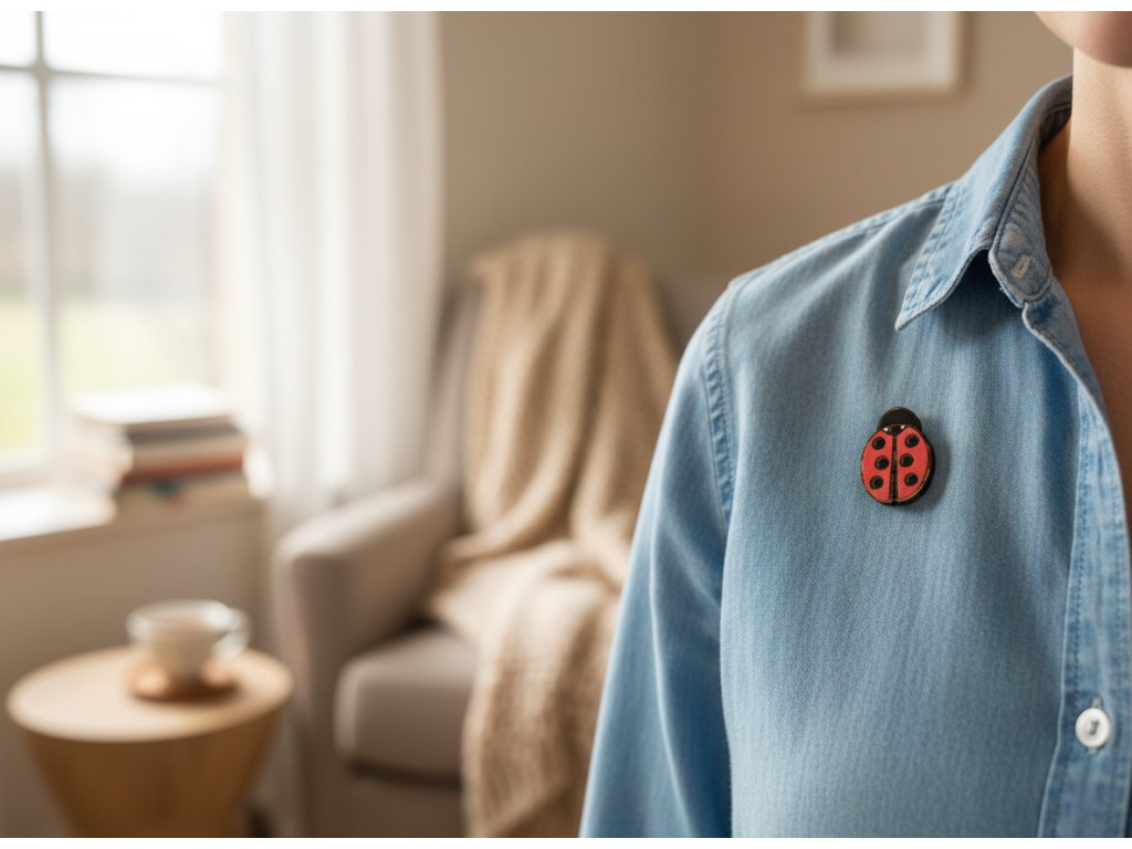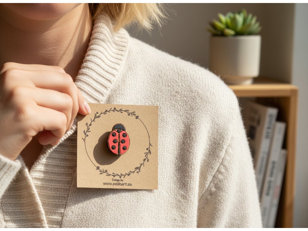 Naše brože jsou vyrobeny z masivního dřeva (ne, opravdu to není lepená překližka), jsou ručně malovány a povrchově ošetřeny. Jsou opatřeny brožovým můstkem se zámečkem, aby se nemohl samovolně otevřít.