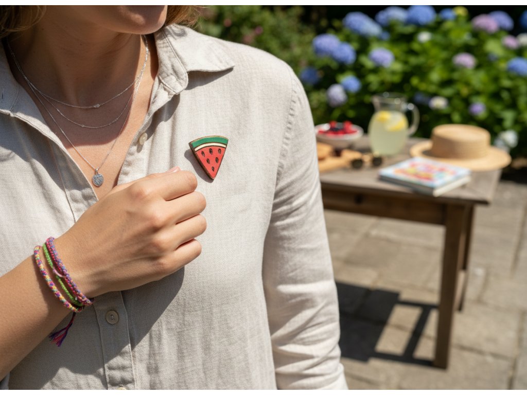 Naše brože jsou vyrobeny z masivního dřeva (ne, opravdu to není lepená překližka), jsou ručně malovány a povrchově ošetřeny. Jsou opatřeny brožovým můstkem se zámečkem, aby se nemohl samovolně otevřít.