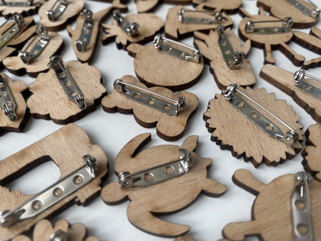 Naše brože jsou vyrobeny z masivního dřeva (ne, opravdu to není lepená překližka), jsou ručně malovány a povrchově ošetřeny. Jsou opatřeny brožovým můstkem se zámečkem, aby se nemohl samovolně otevřít.