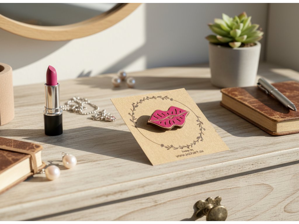 Naše brože jsou vyrobeny z masivního dřeva (ne, opravdu to není lepená překližka), jsou ručně malovány a povrchově ošetřeny. Jsou opatřeny brožovým můstkem se zámečkem, aby se nemohl samovolně otevřít.