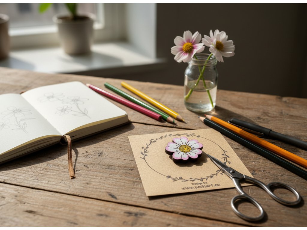 Naše brože jsou vyrobeny z masivního dřeva (ne, opravdu to není lepená překližka), jsou ručně malovány a povrchově ošetřeny. Jsou opatřeny brožovým můstkem se zámečkem, aby se nemohl samovolně otevřít.