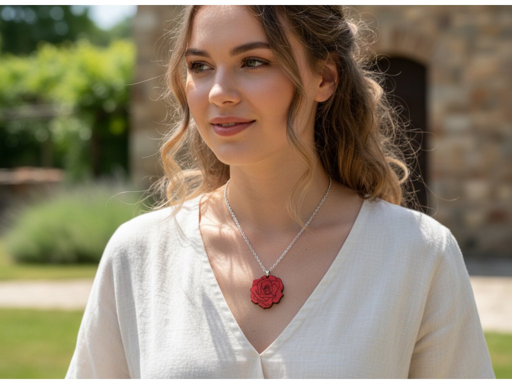 Naše náhrdelníky jsou vyrobeny z masivního dřeva (ne, opravdu to není lepená překližka), jsou ručně malovány a povrchově ošetřeny.