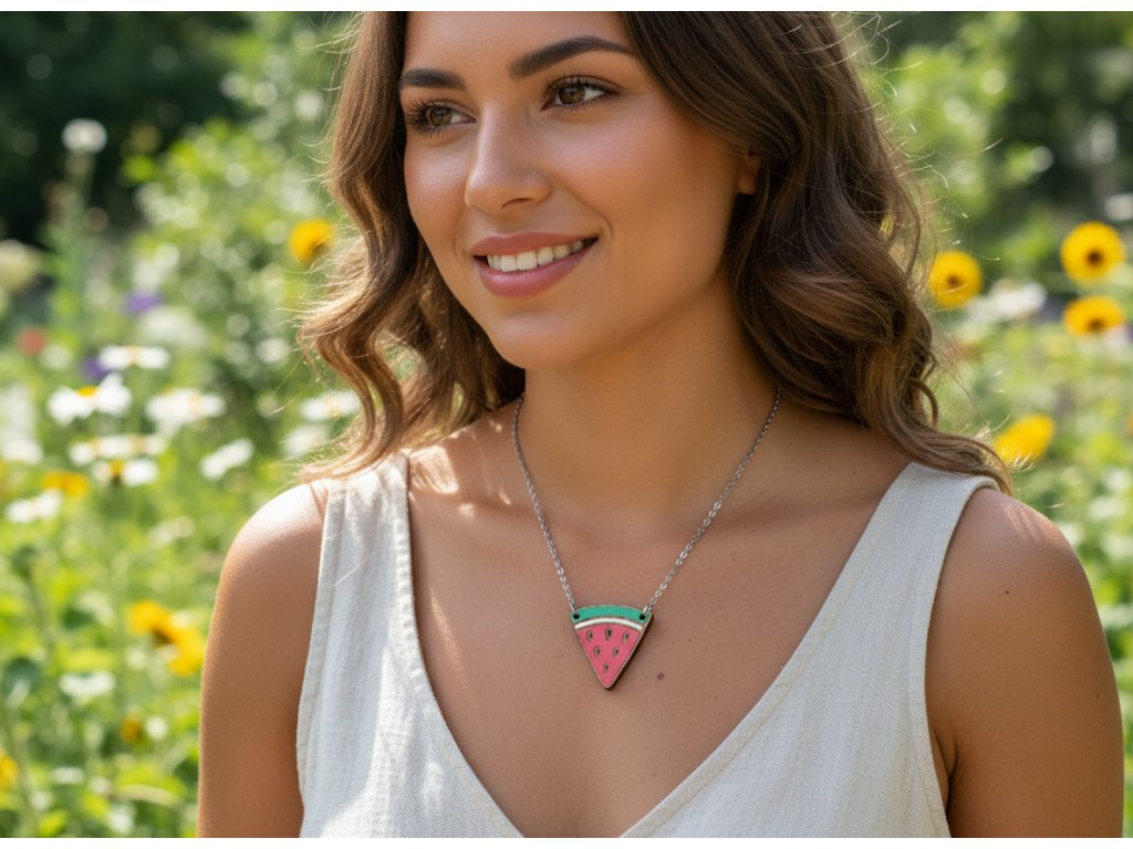 Naše náhrdelníky jsou vyrobeny z masivního dřeva (ne, opravdu to není lepená překližka), jsou ručně malovány a povrchově ošetřeny.