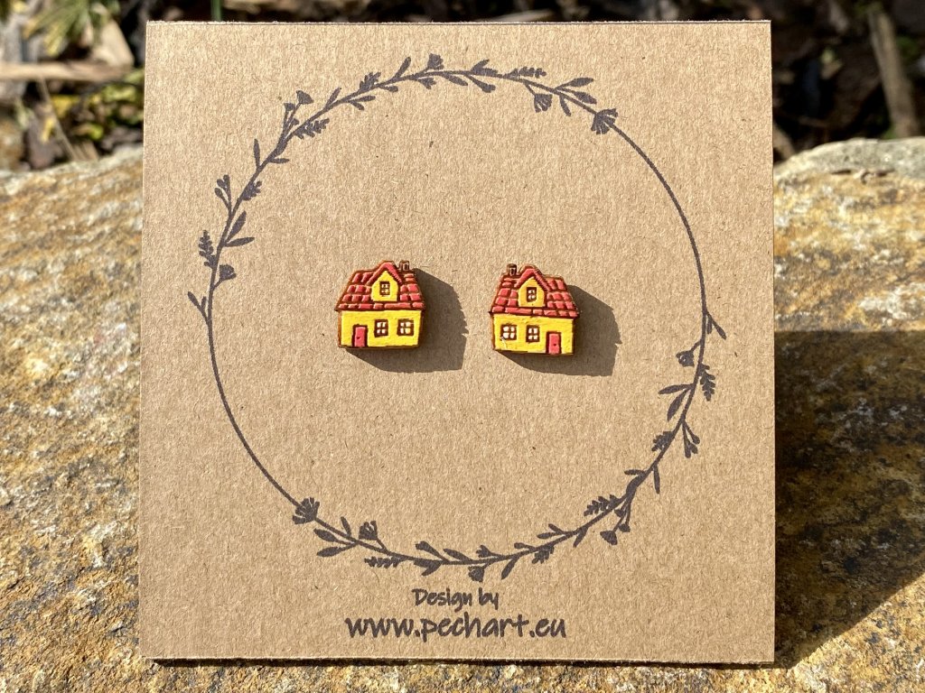 Naše náušnice jsou vyrobeny z masivního dřeva (ne, opravdu to není lepená překližka), jsou ručně malovány a povrchově ošetřeny.