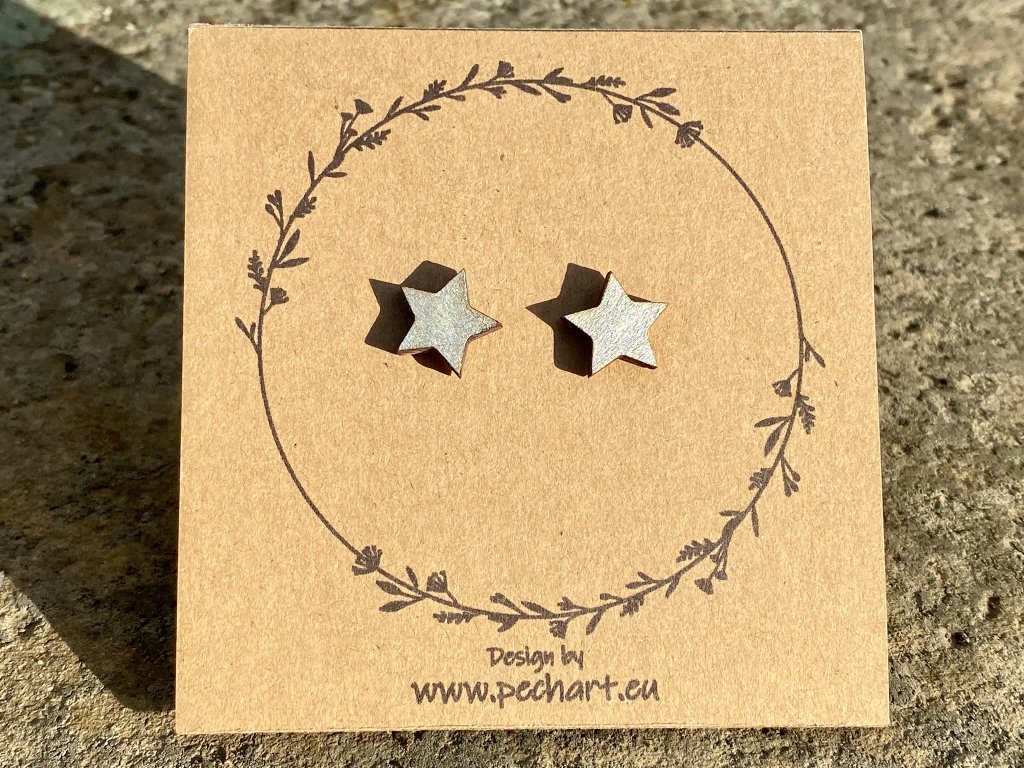 Naše náušnice jsou vyrobeny z masivního dřeva (ne, opravdu to není lepená překližka), jsou ručně malovány a povrchově ošetřeny.