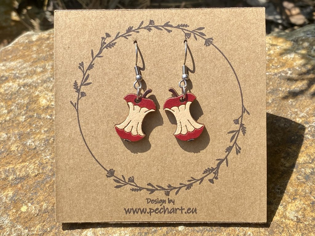 Naše náušnice jsou vyrobeny z masivního dřeva (ne, opravdu to není lepená překližka), jsou ručně malovány a povrchově ošetřeny.