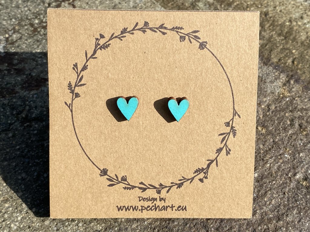 Ručně malované dřevěné náušnice s motivem srdíček.