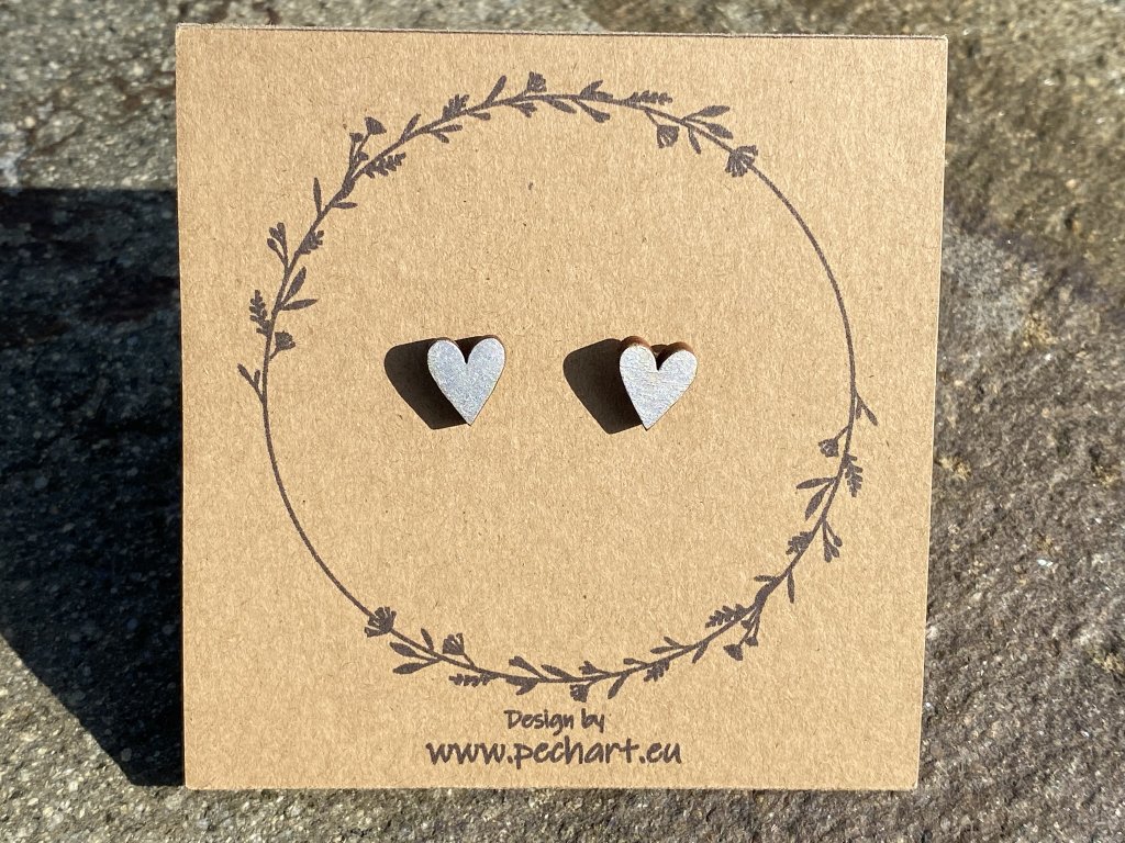 Ručně malované dřevěné náušnice s motivem srdíček.