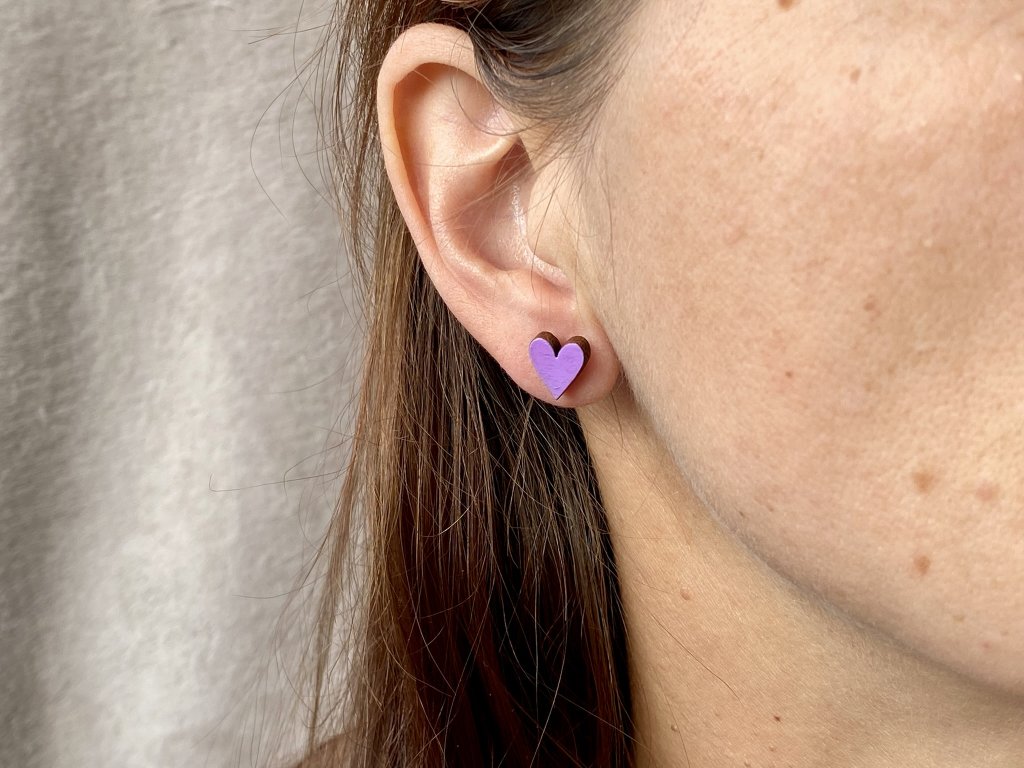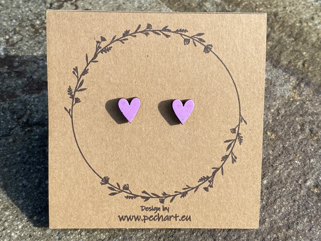Ručně malované dřevěné náušnice s motivem srdíček.