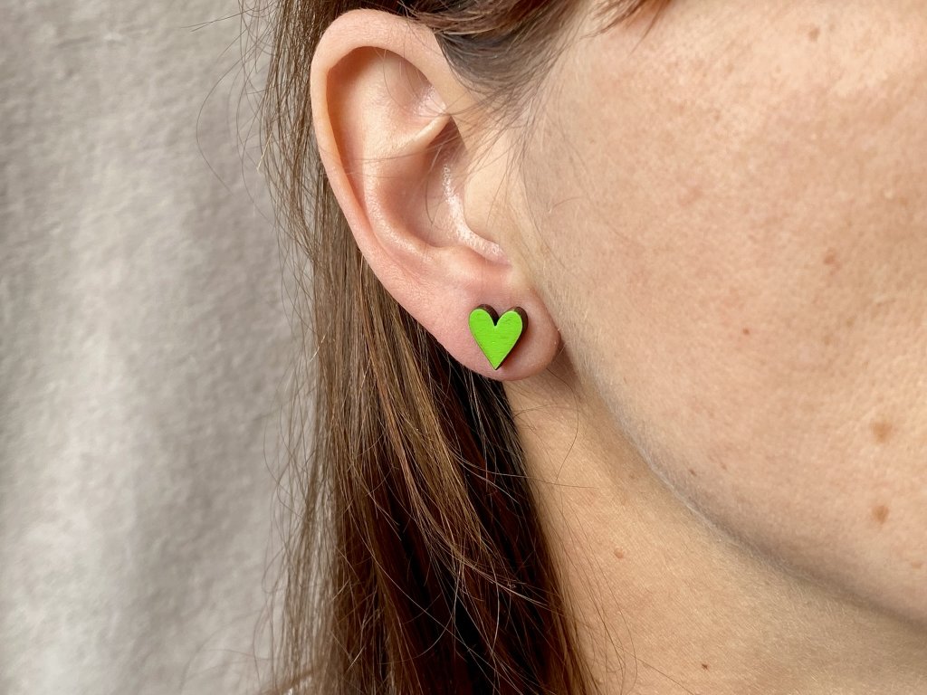 Naše náušnice jsou vyrobeny z masivního dřeva (ne, opravdu to není lepená překližka), jsou ručně malovány a povrchově ošetřeny.