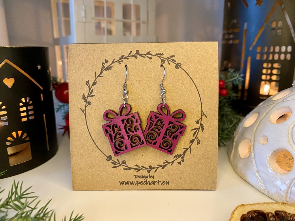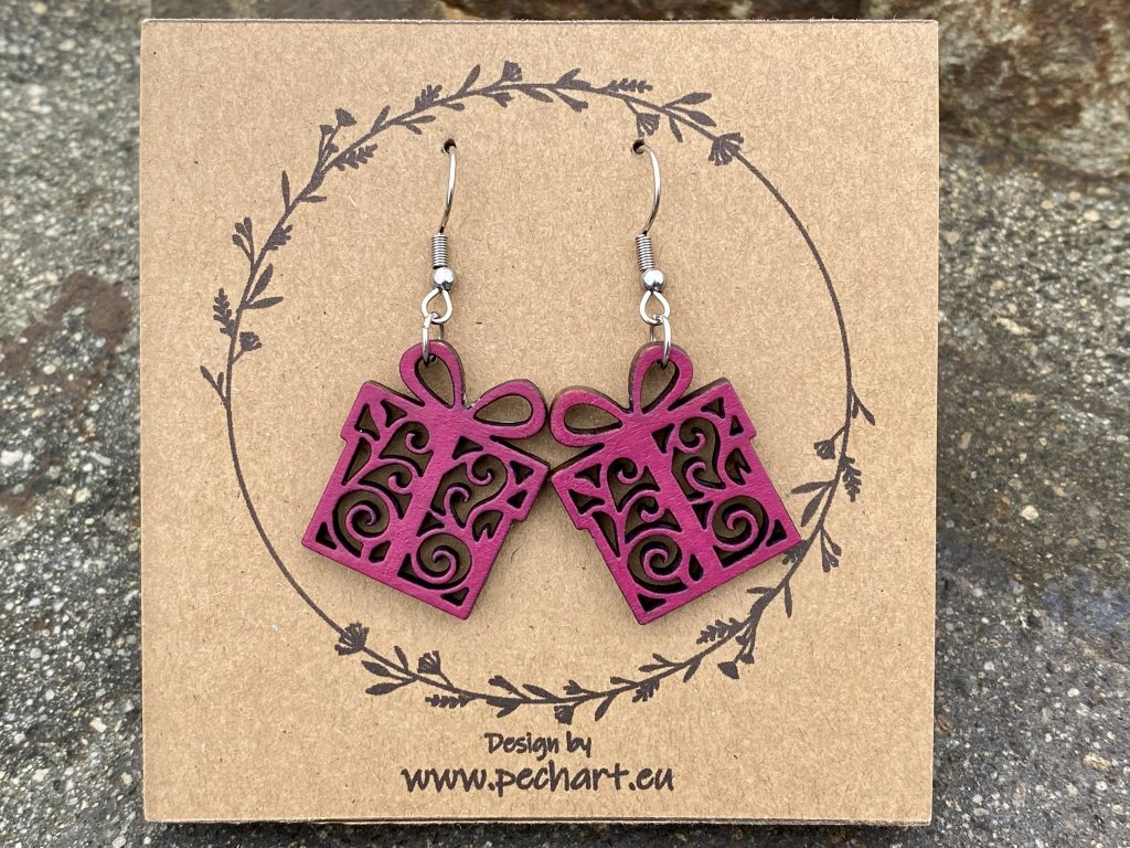 Naše náušnice jsou vyrobeny z masivního dřeva (ne, opravdu to není lepená překližka), jsou ručně malovány a povrchově ošetřeny.