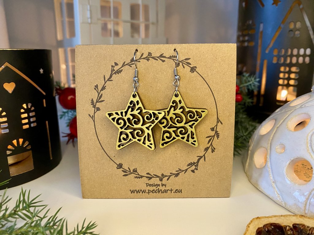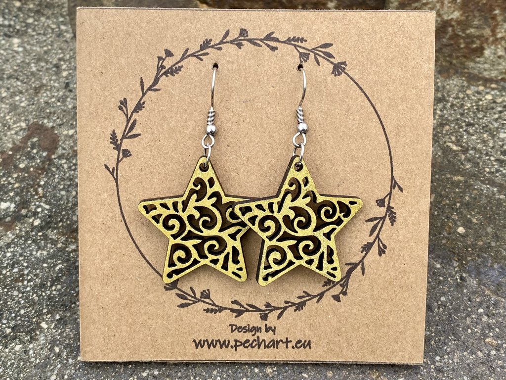 Naše náušnice jsou vyrobeny z masivního dřeva (ne, opravdu to není lepená překližka), jsou ručně malovány a povrchově ošetřeny.