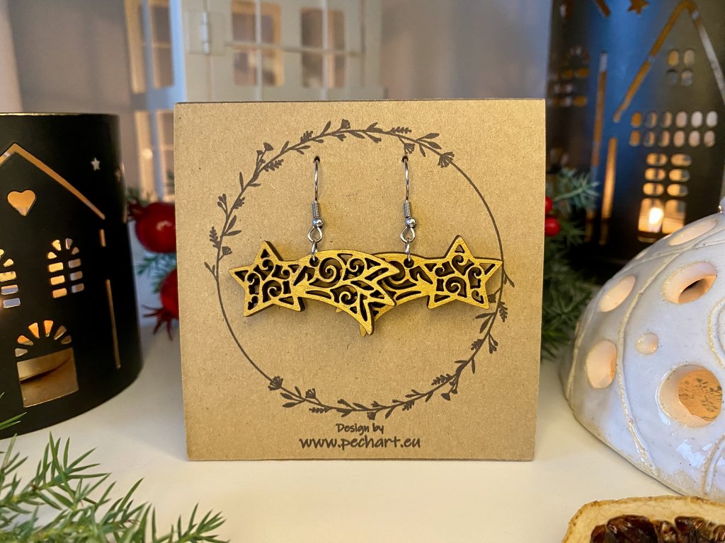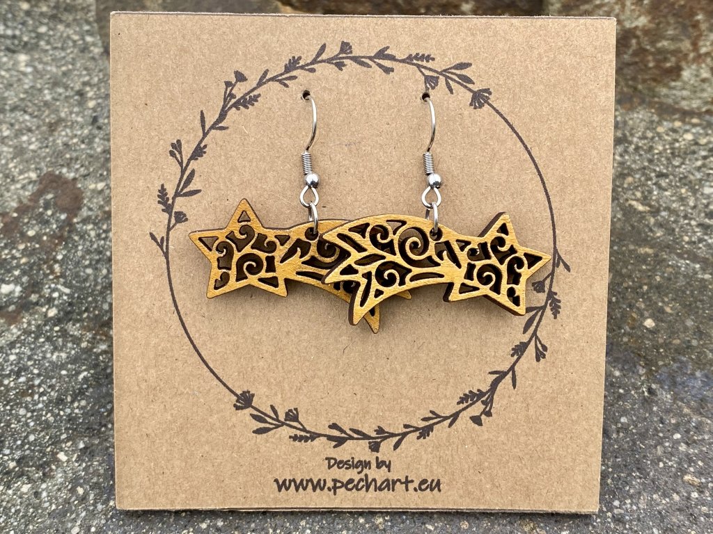 Naše náušnice jsou vyrobeny z masivního dřeva (ne, opravdu to není lepená překližka), jsou ručně malovány a povrchově ošetřeny.